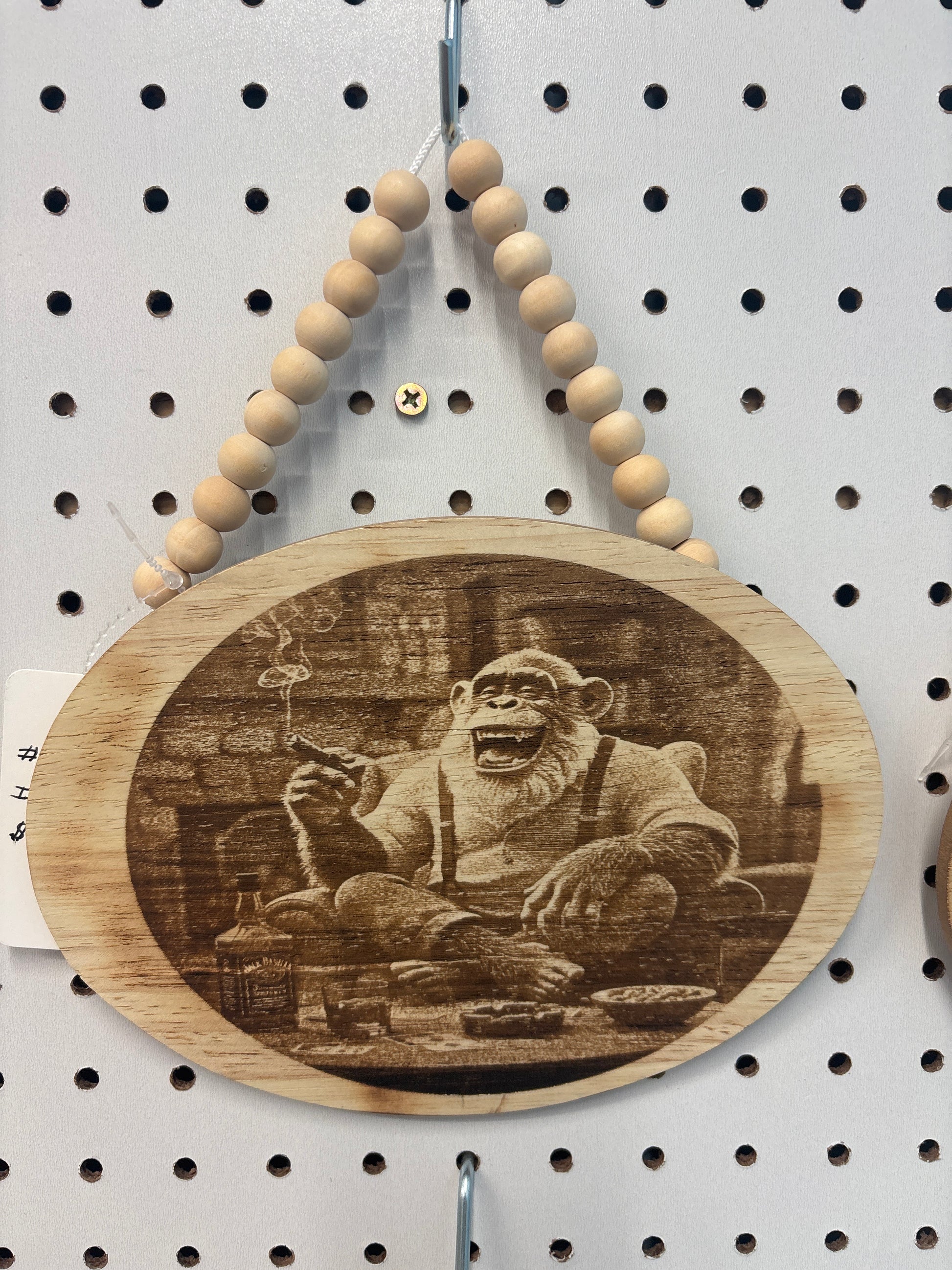 The BO1 is a laser-engraved wooden sign featuring a chimp smoking a cigar. This unique design serves as a conversation starter and can enhance the aesthetic of various spaces. Crafted with precision, the engraving ensures durability, making it suitable for both indoor and outdoor display.