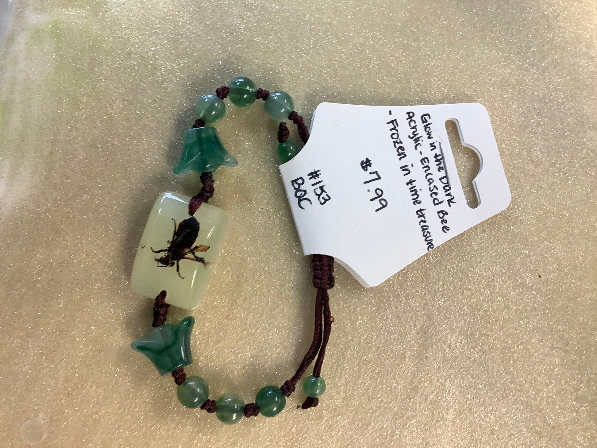 This Glow in the Dark Acrylic Encased Bee bracelet combines aesthetic appeal with functional design. Made from durable acrylic, it ensures longevity while its glow-in-the-dark feature provides visibility in low-light conditions. This unique accessory can enhance safety during nighttime activities, making it suitable for various settings.