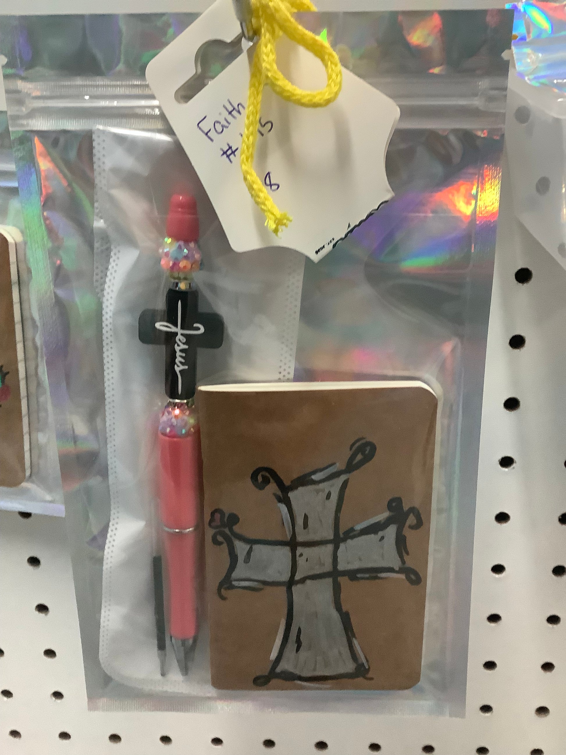 This notepad features a hand-drawn design and includes a handmade pen. Its functional aesthetic promotes organized note-taking, enhancing user engagement and creativity. The combination of unique artistry and practical writing tools supports effective journaling practices, making it suitable for both personal and professional use.